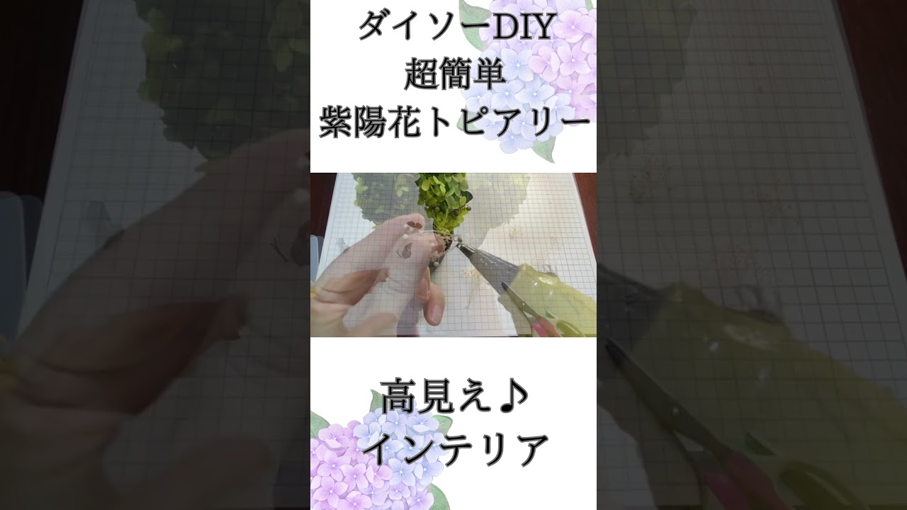 | タイトル | ダイソーのトピアリーで簡単DIY!紫陽花プリザーブドフラワーの観葉植物風アレンジ |