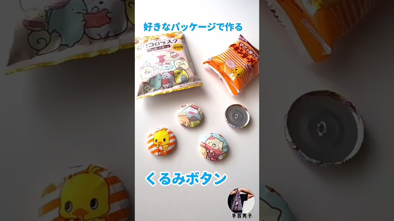 | タイトル | お菓子の袋で作る くるみボタン*ダイソー くるみボタンキット すみっコぐらし コロコロラスク チキンラーメン |
